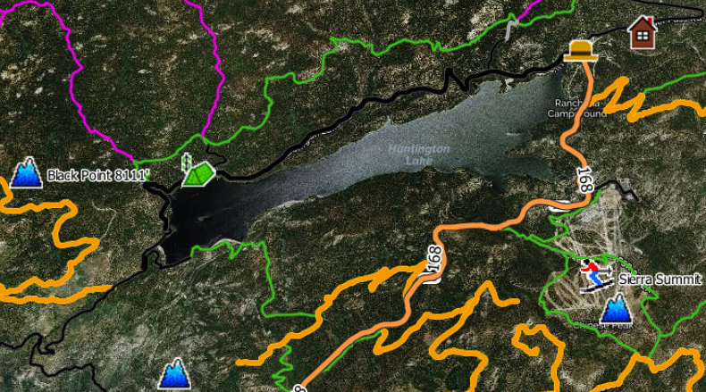 Topo background is installed as a separate map. Map overlay feature is use to display the trail map on top of the topo background or satellite imagery.